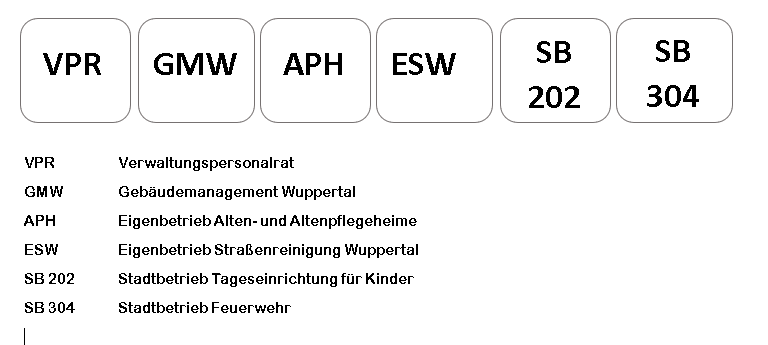 GPR ist die Abkürzung für Gesamtpersonalrat, zu seinem Zuständigkeitsbereich gehören alle Ämter, Ressorts und Eigenbetriebe der Stadt Wuppertal, also auch diejenigen, die einen eigenen Personalrat haben wie z.B. ESW, Stadtbetrieb 202, GMW, etc. Der GPR ist ein eigenständiges Gremium, er ist den Einzelpersonalräten nicht übergeordnet, sondern „nur“ für andere Themen zuständig.